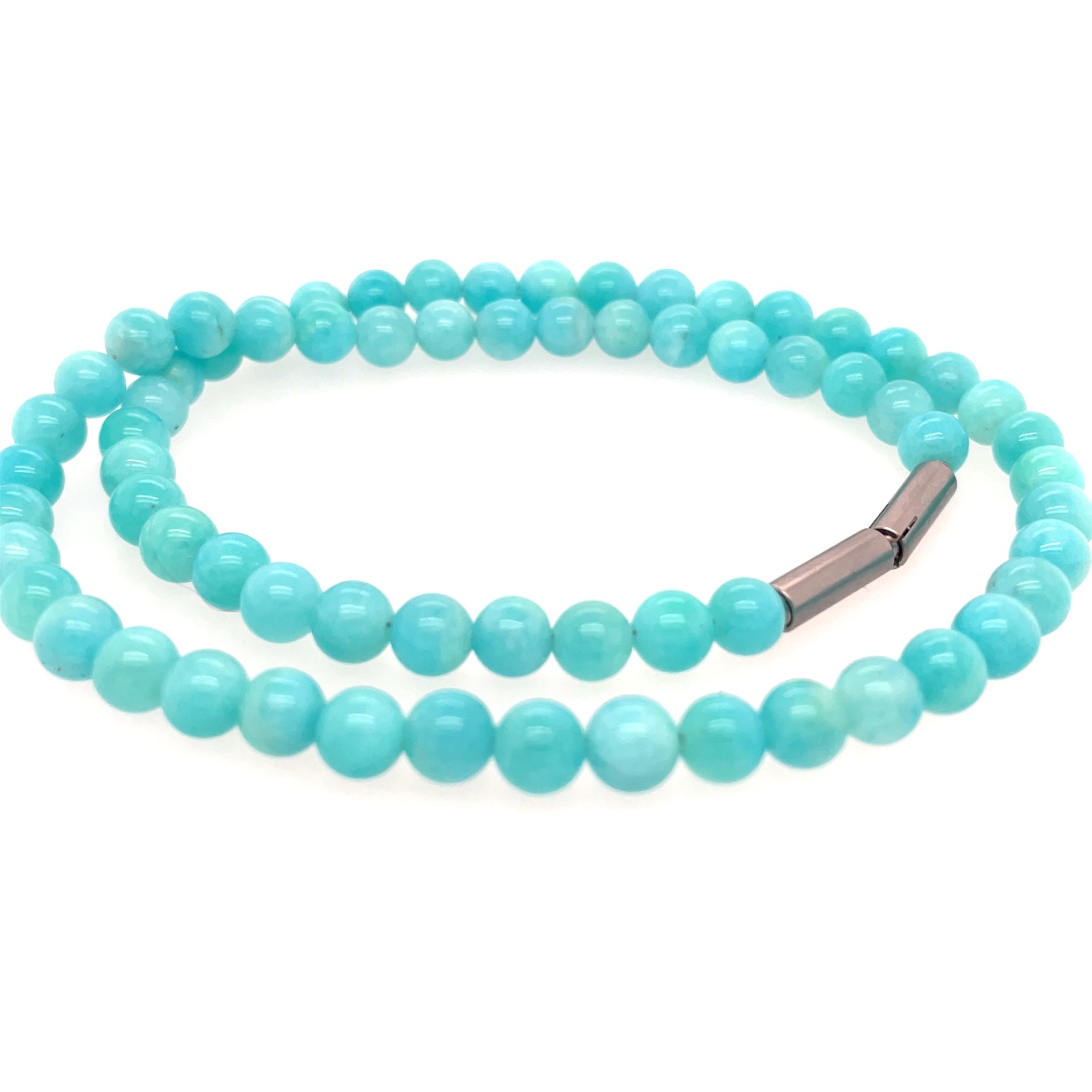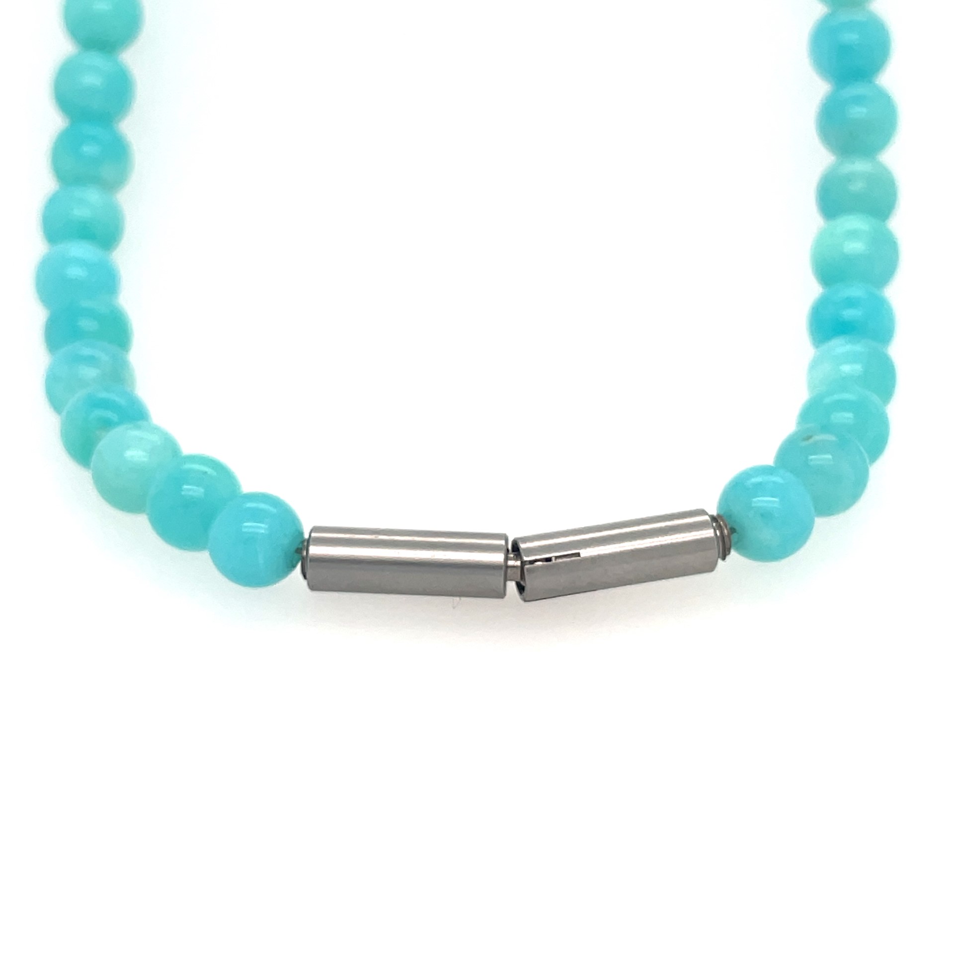 Stoere ketting met stalen sluiting en amazoniet.