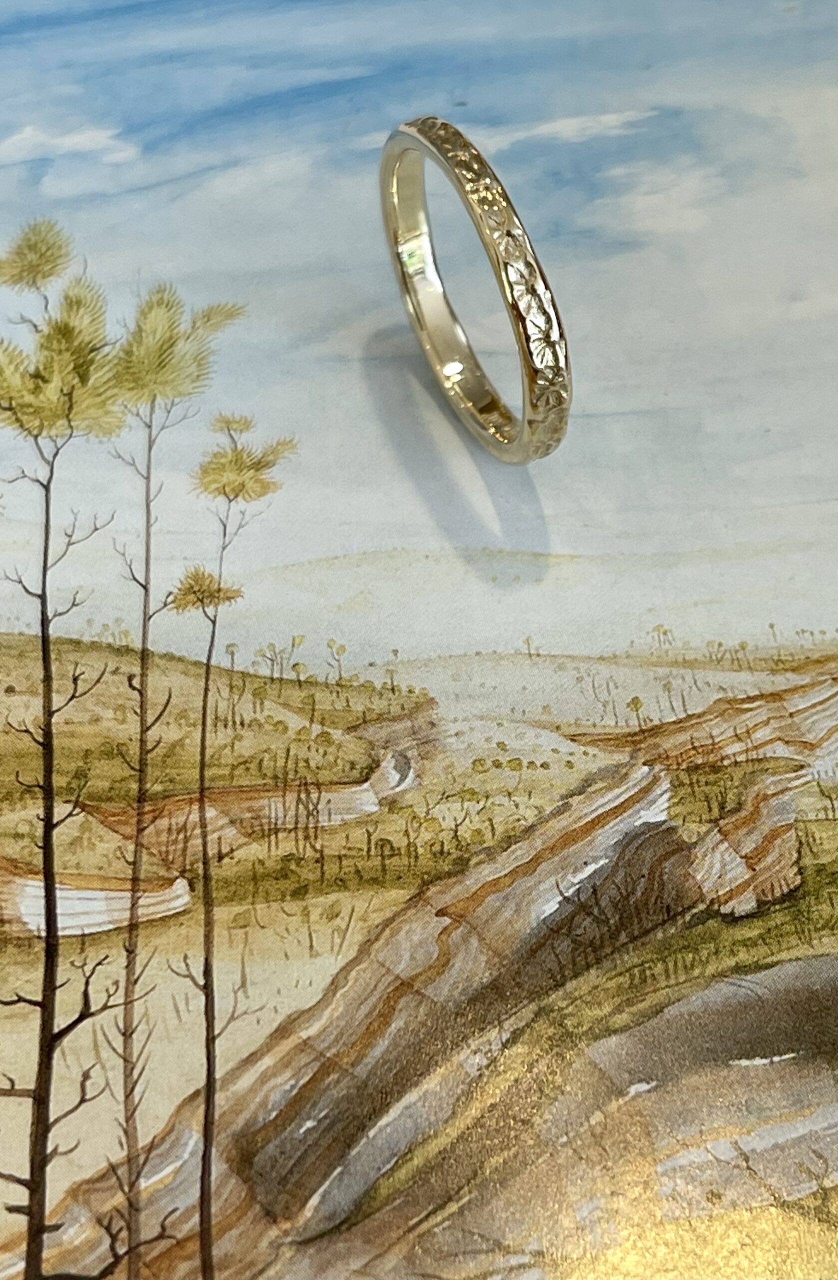 Deze ring lijkt op de White flower aanschuifring. Net zo’n elegante ring, maar met net een andere afbeelding in de scheen. De ring heeft een florentine patroon. Dit zijn ideale ringen om bij andere ringen aan te schuiven, maar ook los is dit een hele mooie ring.