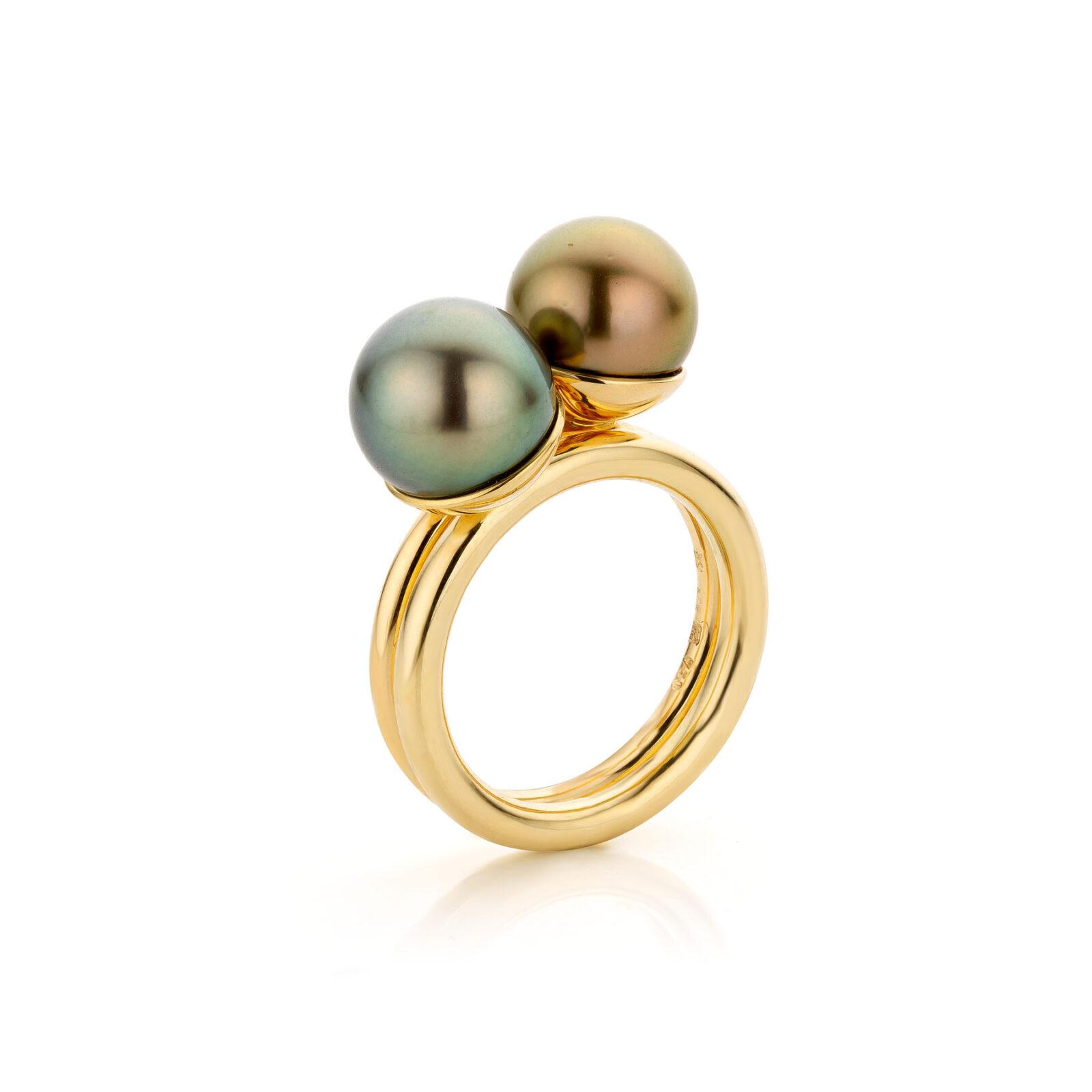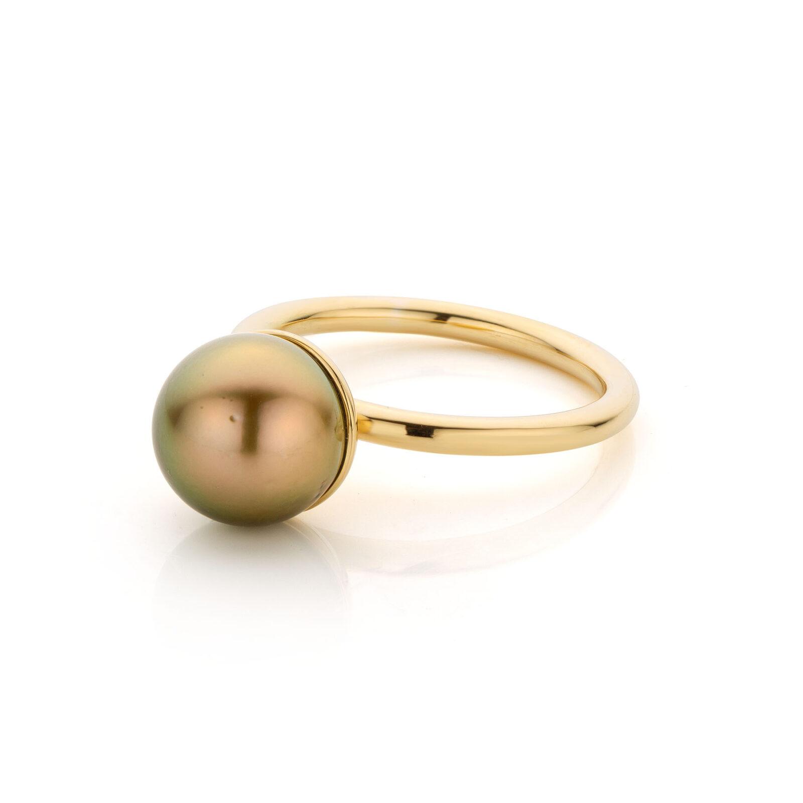 Deze eenvoudige ring met prachtige brons/groene tahitiparel kan mooi solo gedragen worden, maar combineert ook mooi met andere ringen.