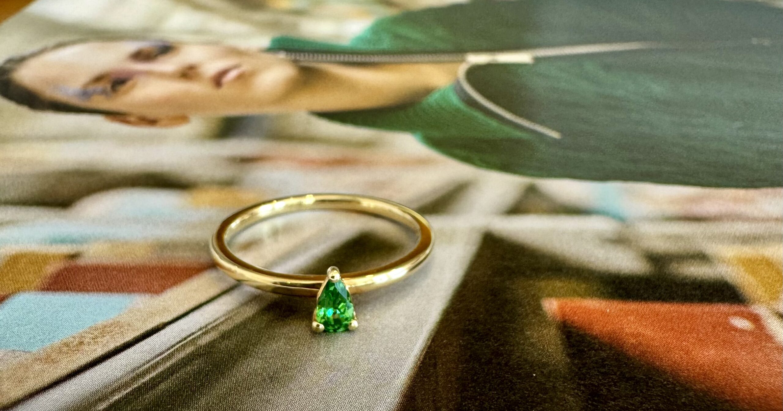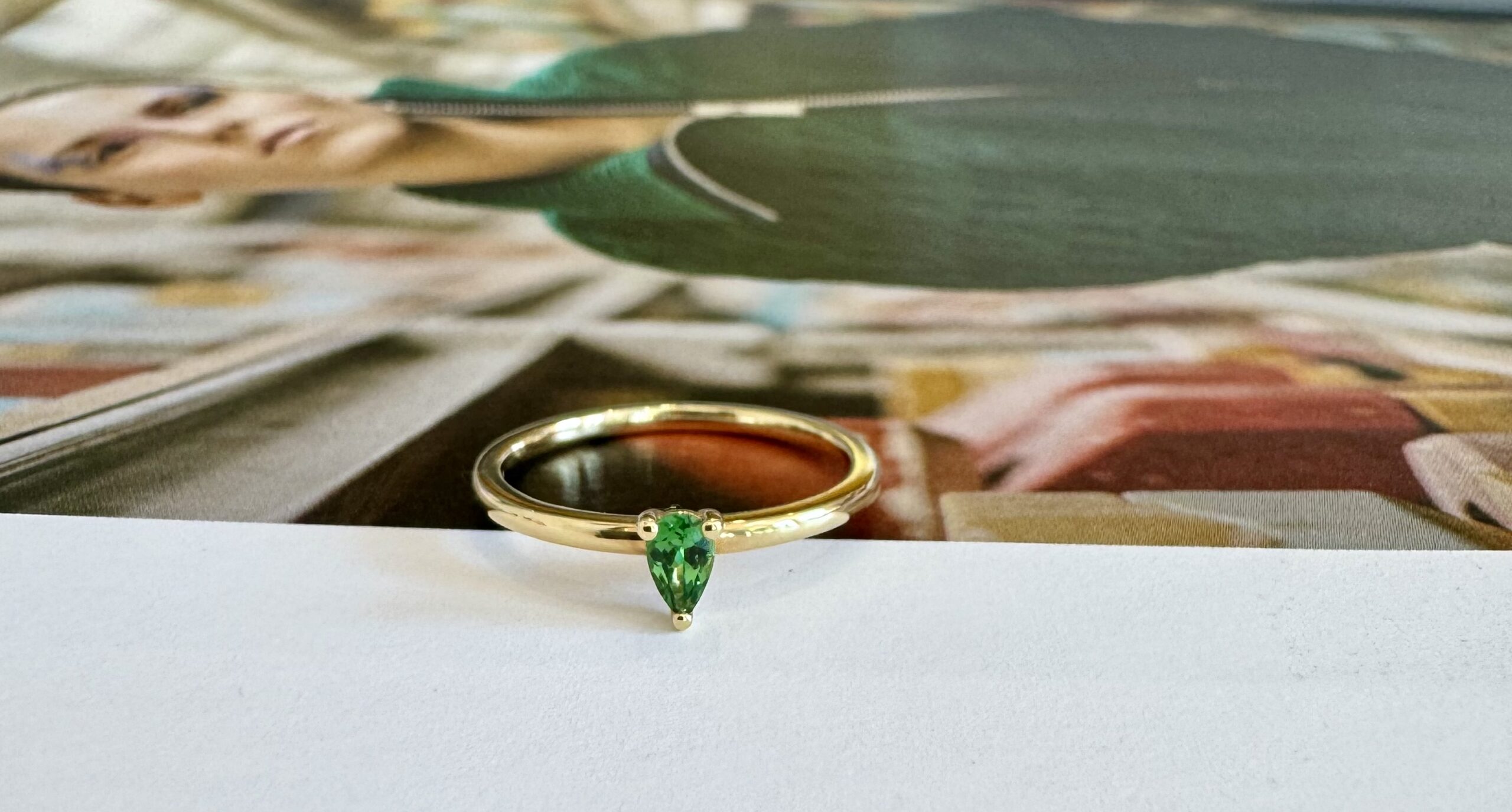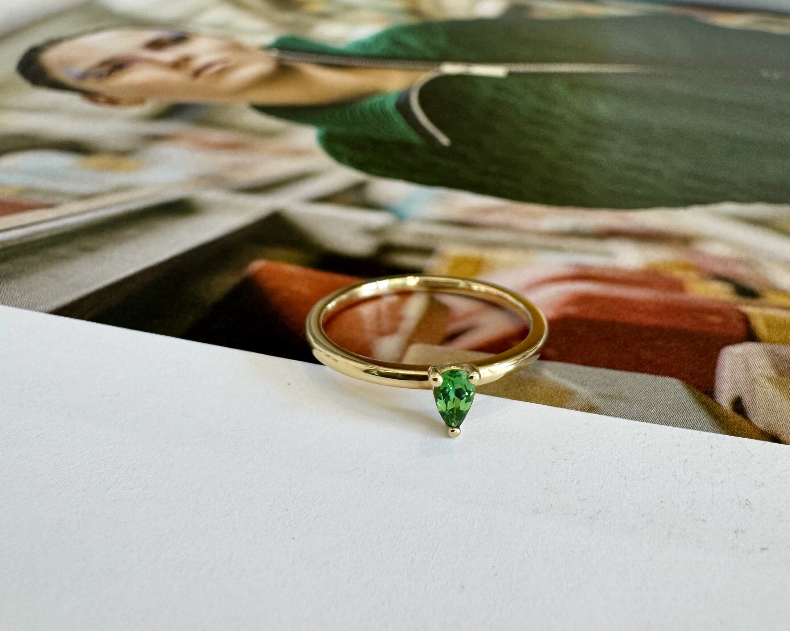 Dit ringetje is echt een schatje! De kleine druppelvormige tsavorit is zo intens van kleur! Hoe leuk om als afstudeercadeau of voor een 18e verjaardag te geven! Ook natuurlijk met meerdere ringen bij elkaar!