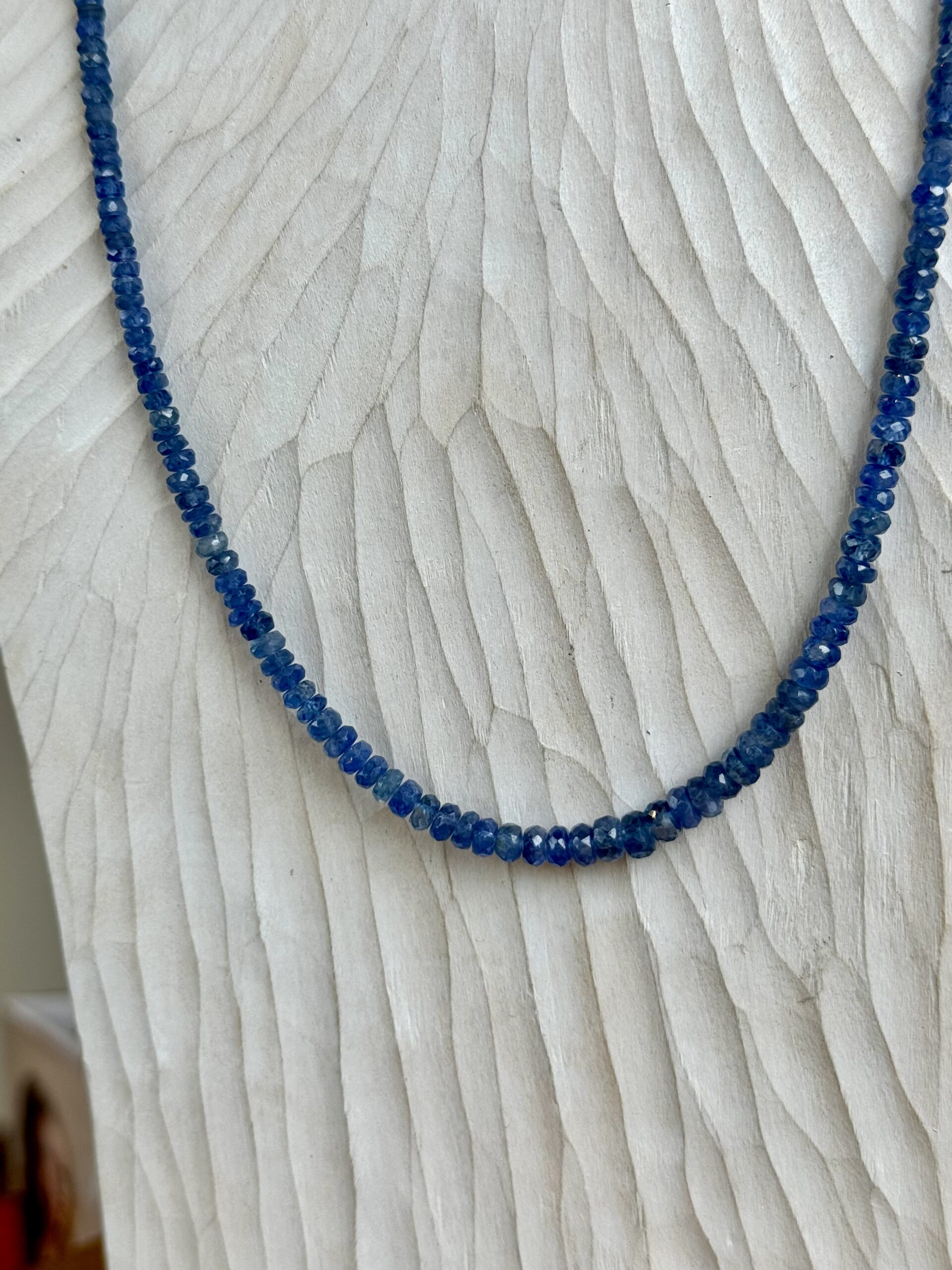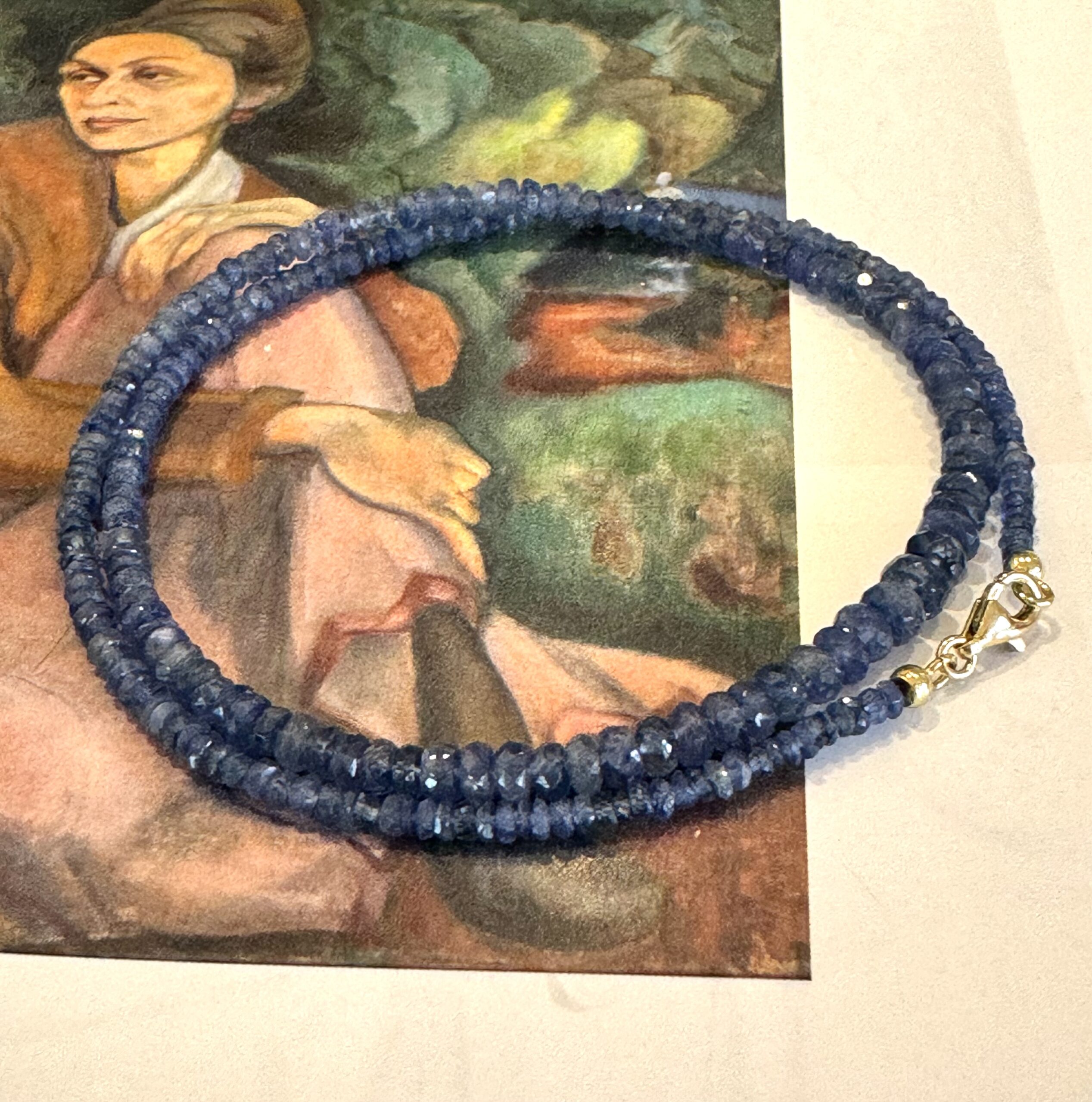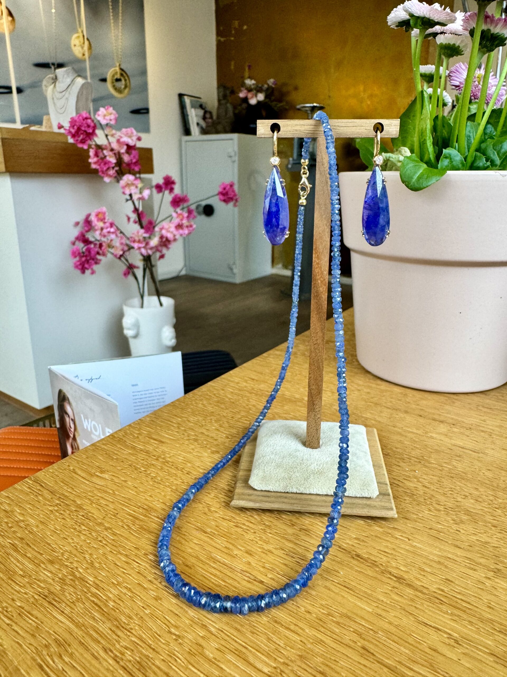 Saffieren kennen we eigenlijk allemaal wel van de klassieke ringen met saffier en briljant zoals Princess Diana deze had. Maar saffieren komen in zoveel meer verschillende maten, vormen en kleuren. Zo ook deze prachtige saffier ketting. Deze ketting heeft een verloop wat inhoudt dat de saffieren van grootte aflopend/oplopend zijn. De kleur is niet diep donkerblauw, maar juist een hele warme paars/blauwe teint. Het zijn dan ook allemaal natuurlijke saffieren die niet behandeld zijn.