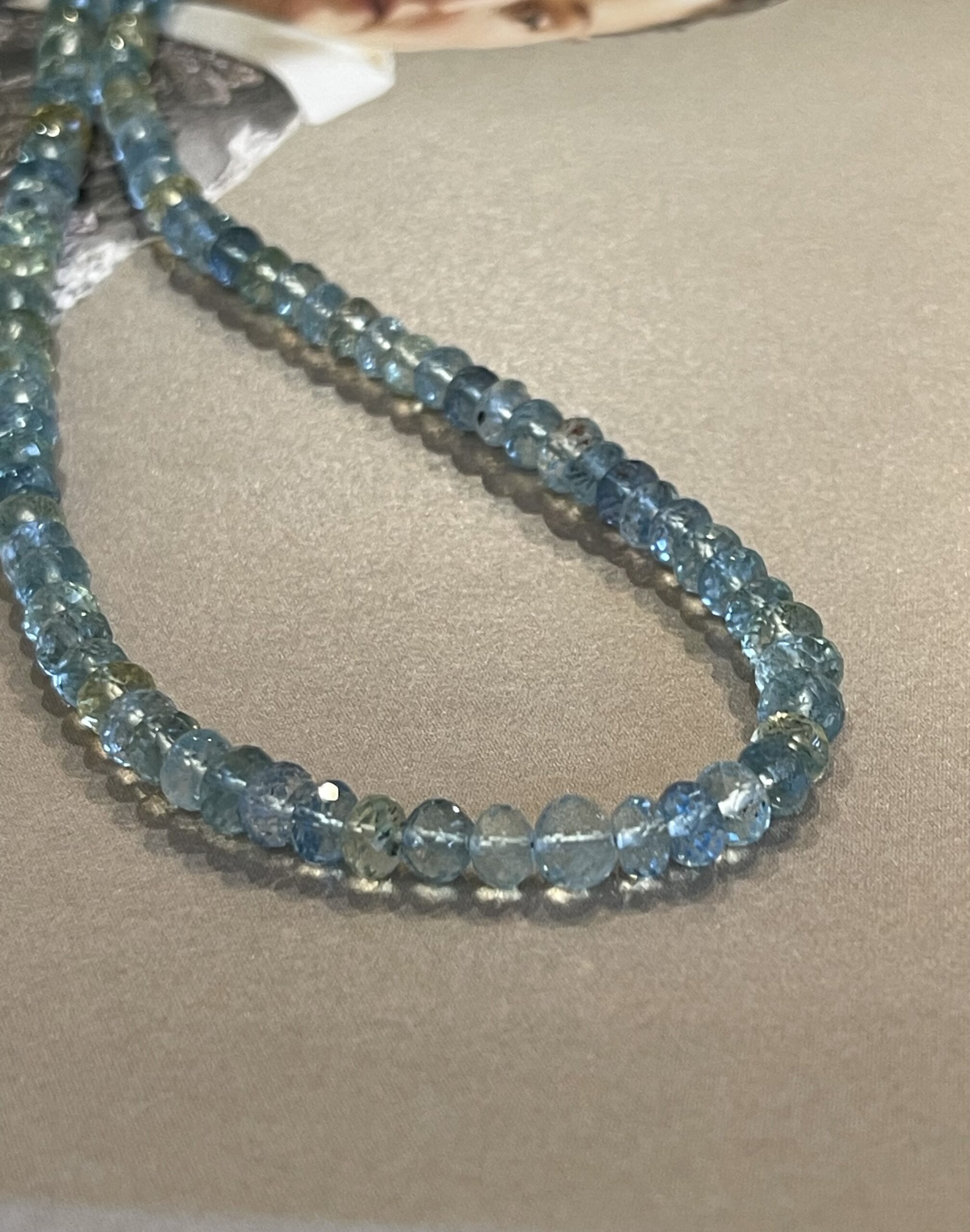 Moana is een meisjes naam die uit Hawaï komt en oceaan betekent. De naam is tegenwoordig vooral bekend door de Disney film Vaiana. Deze ketting heeft ook alle kleuren van de oceaan. De aquamarijnen en beryl edelstenen hebben allemaal net een andere tint. De ketting heeft een witgouden balsluiting die de ketting echt complementeert. De edelstenen zijn 3-5,5mm en rond gefaceteerd. De ketting heeft een prachtig verloop.