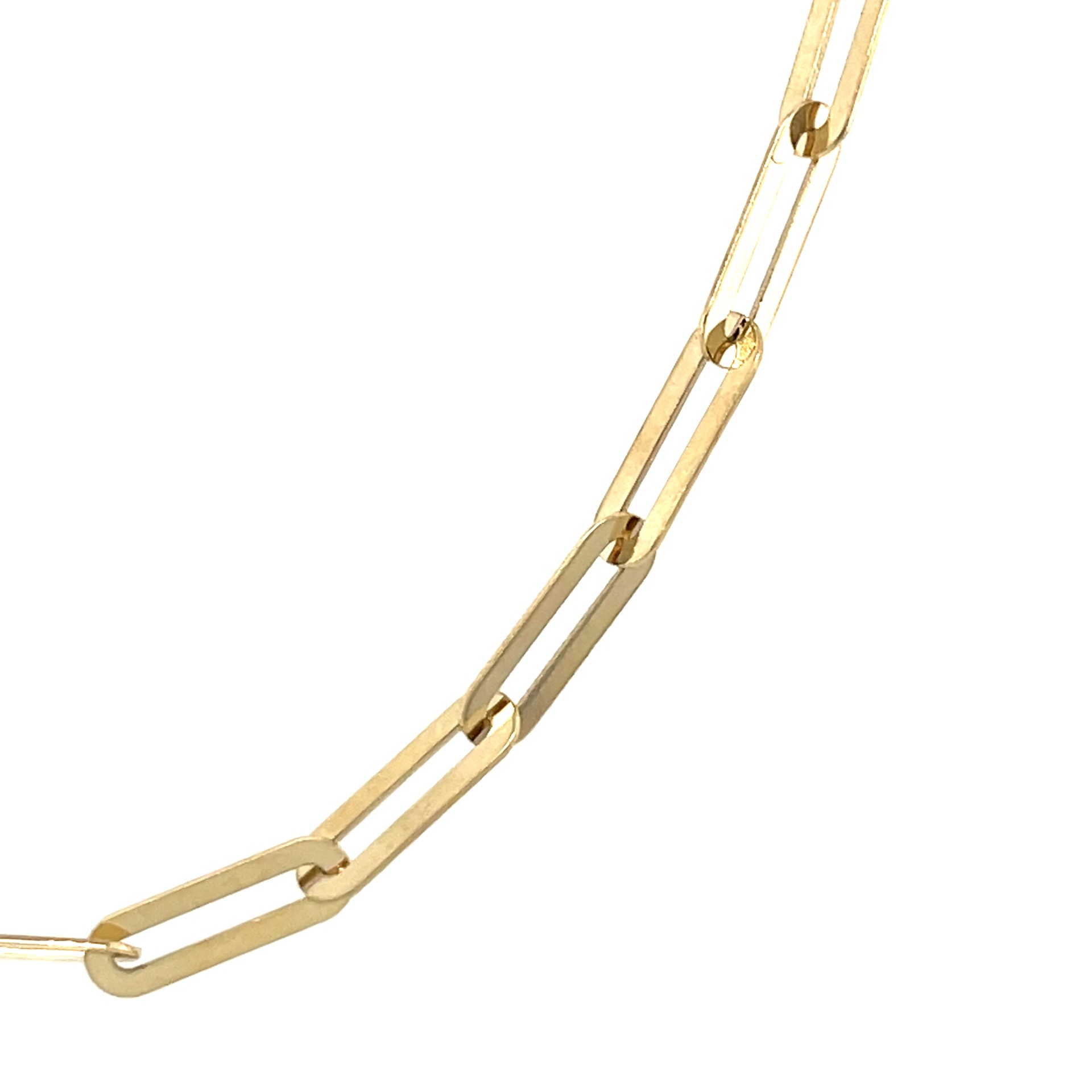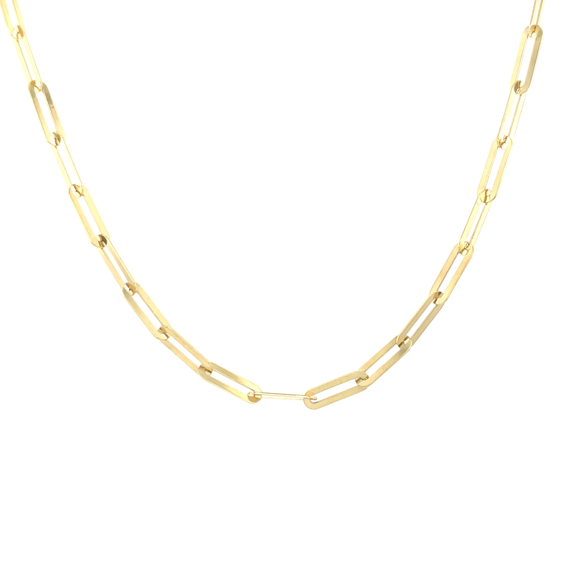 Paperclip colliers zijn er in vele soorten en maten. Dit collier heeft een platte paperclip schakel. Dit valt heel anders om de hals dan met een ronde schakel en heeft een moderne uitstraling. Hoe leuk om te combineren met een mooie hanger of met verschillende kettinkjes.