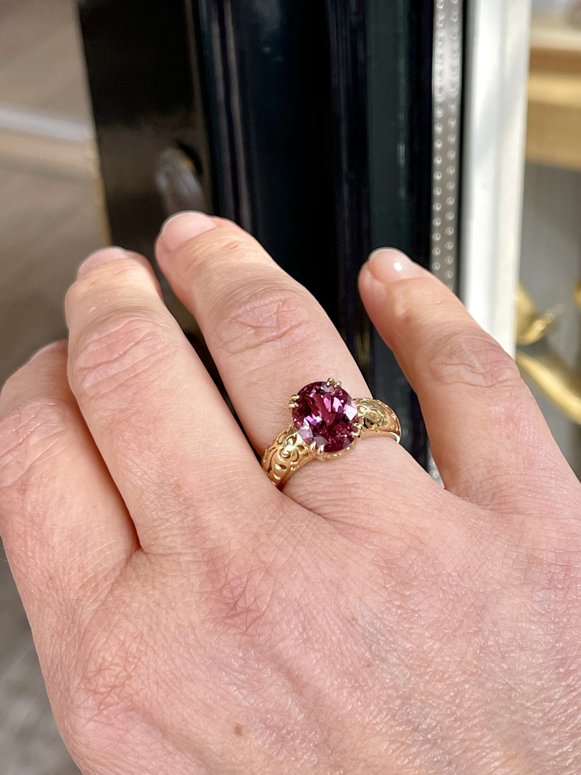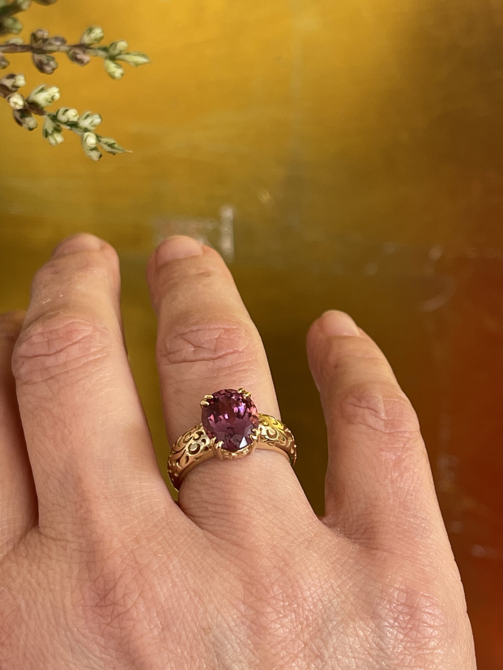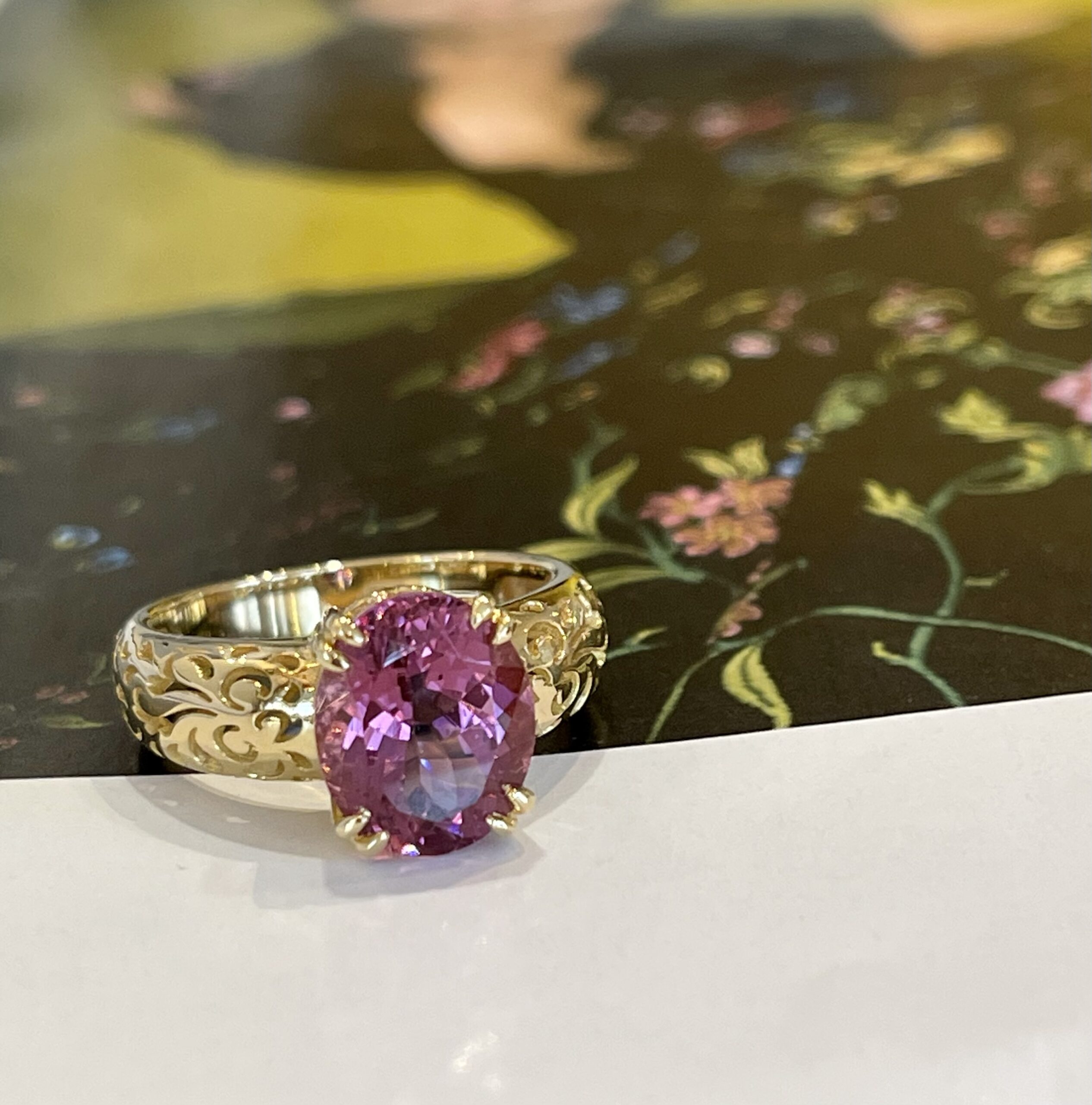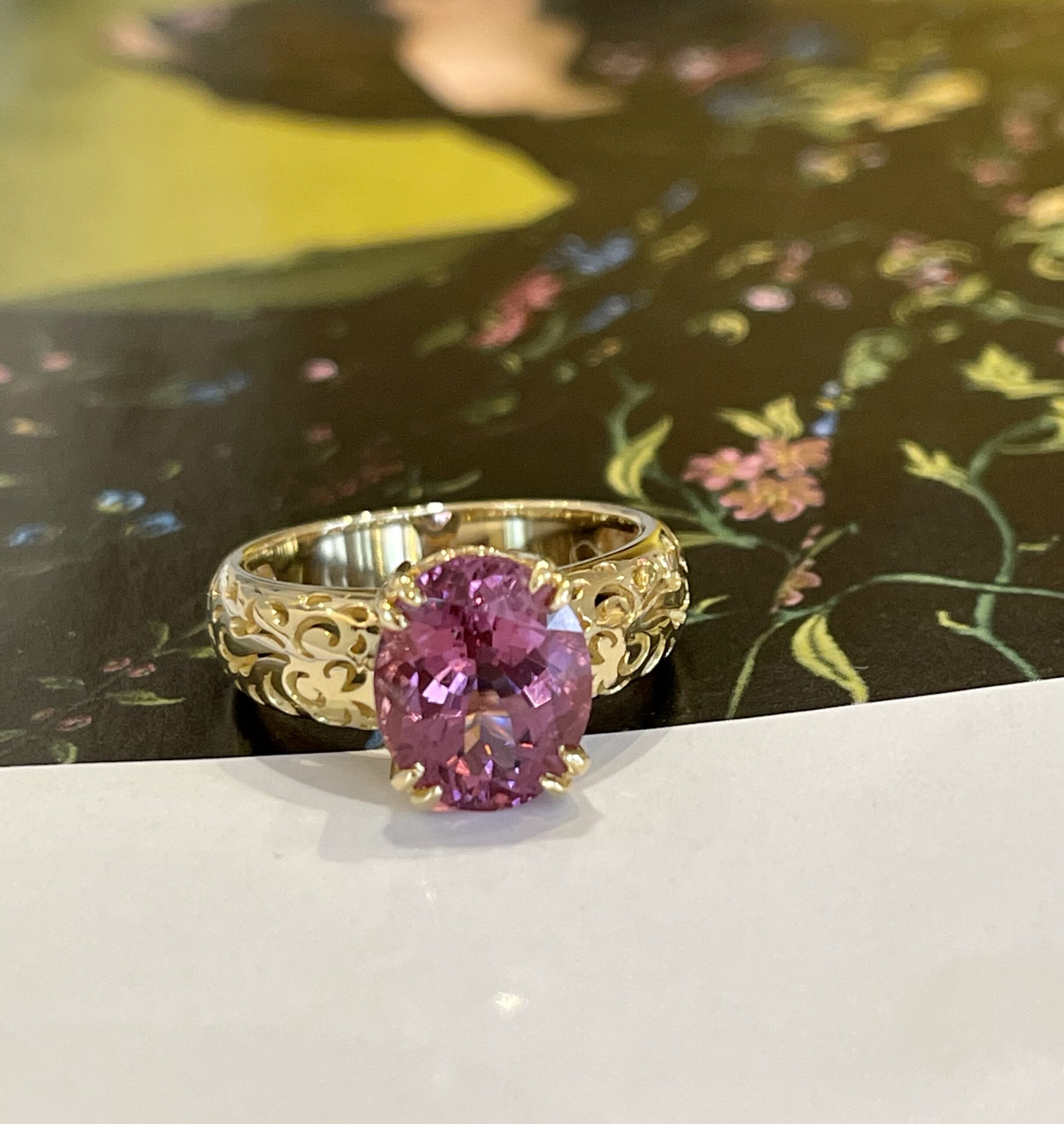 Voor onze collectie Flower of Happiness hebben we weer een mooie aanvulling gemaakt. Deze ring met haar kenmerkende flower of happiness patroon op de scheen heeft als eyecatcher een prachtige rubelite. Deze rubelite is meer roze dan rood en schittert als geen ander. Met deze ring aan uw vinger heeft u echt een pronkstuk die volledig one of a kind is!