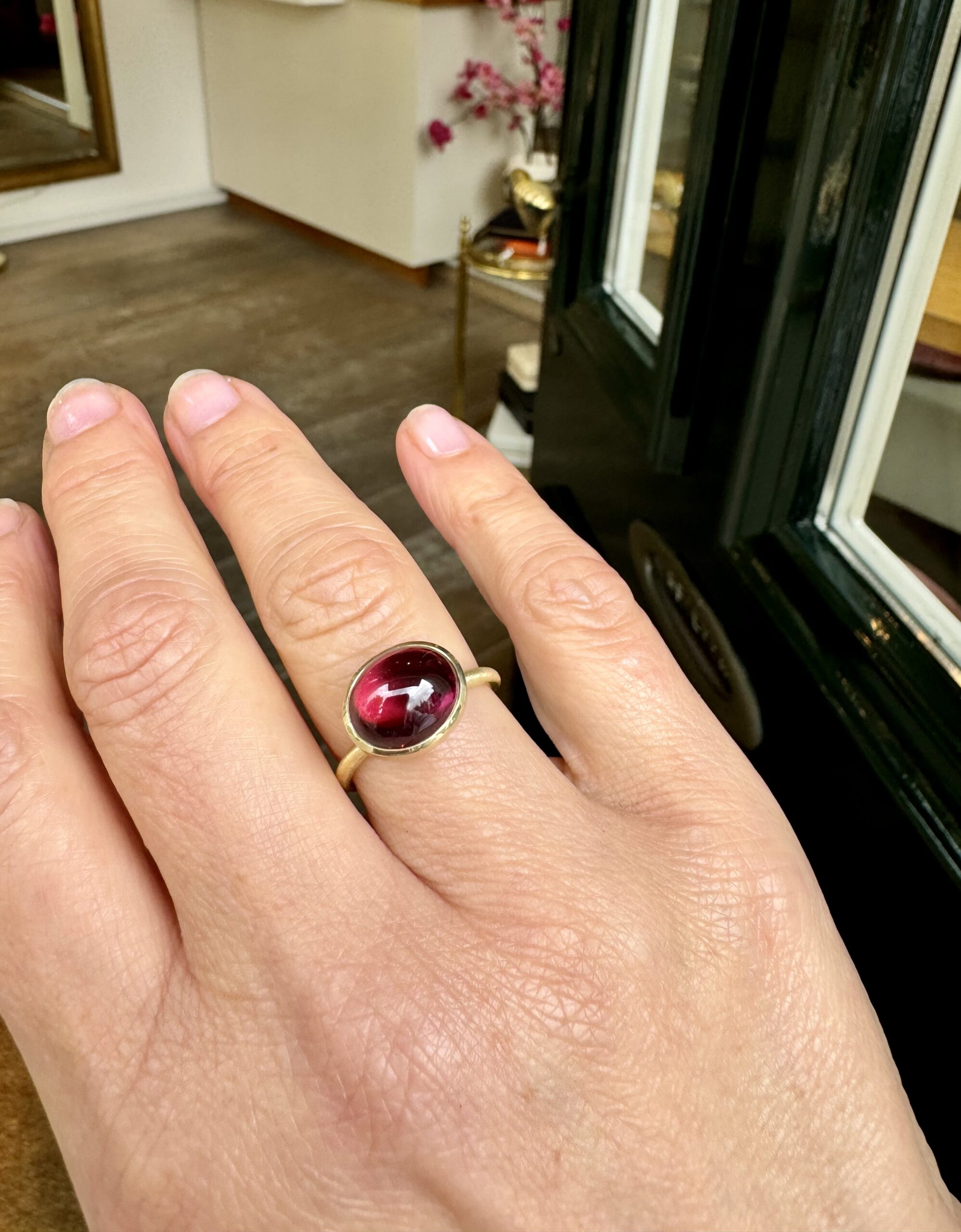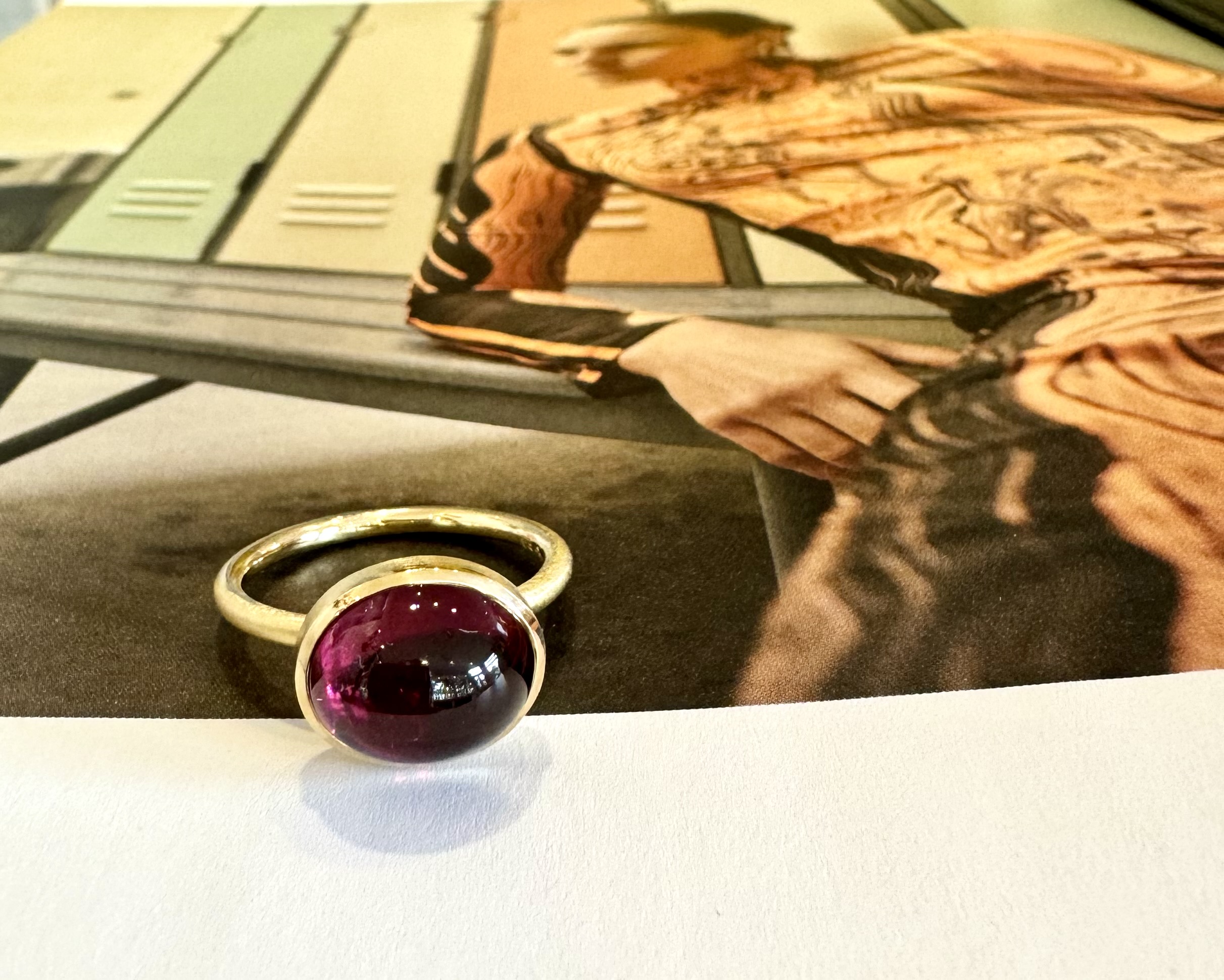 Deze Tutti Frutti ring heeft een rhodolite. Deze edelsteen is prachtig roze/rood van kleur en geeft de ring zoveel warmte en kracht! Echt een ring om verliefd op te worden. We zijn zo benieuwd welke draagster ook verliefd wordt op deze ring!