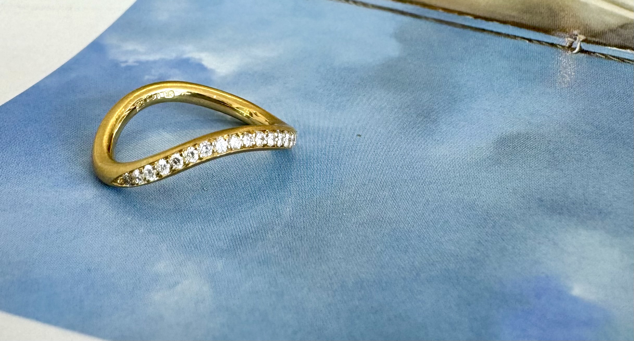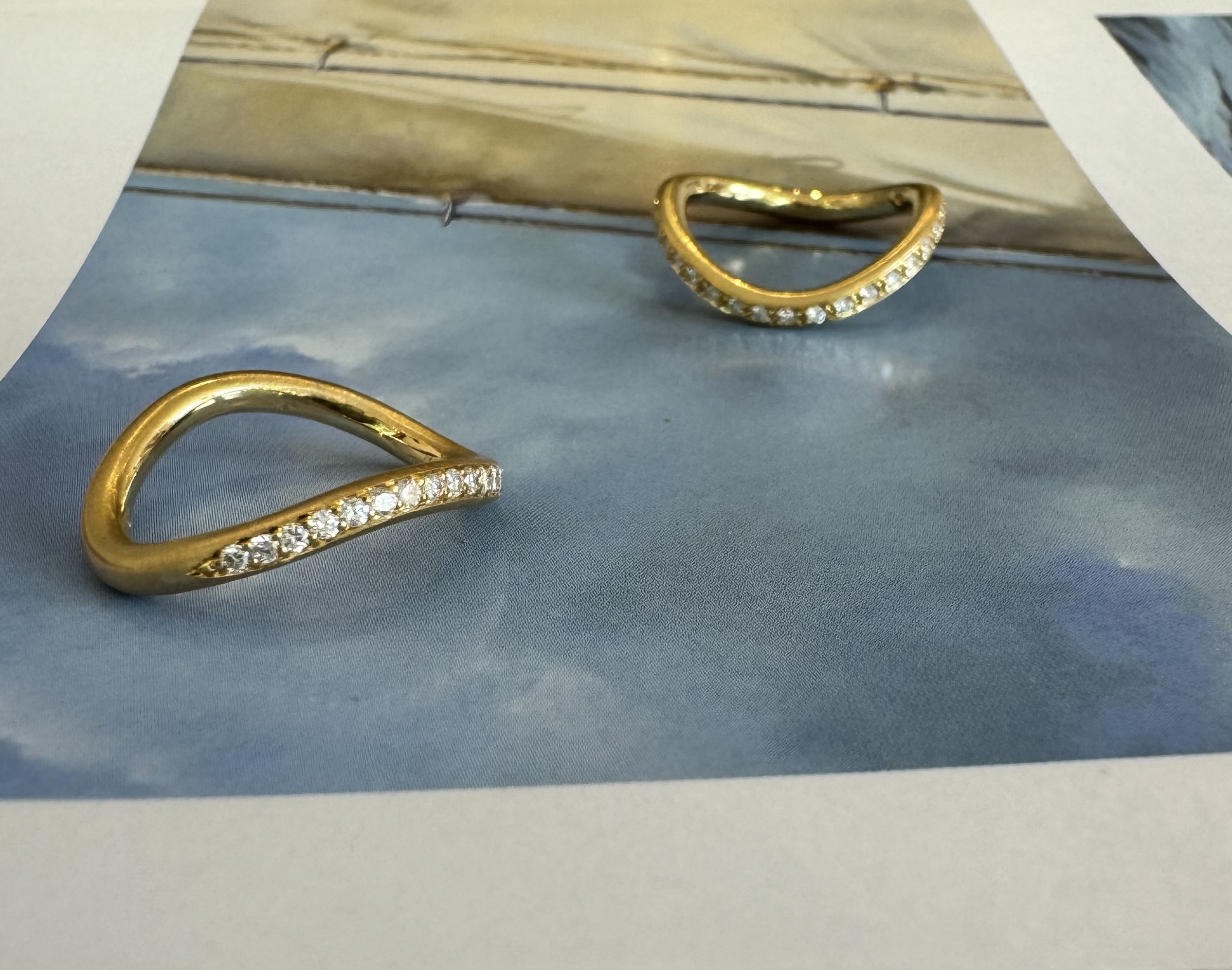 Het kleinere zusje van de ring Ongoing wave! Deze ring is niet alleen kleiner in ringmaat, maar de briljantjes zijn ook tot halverwege gezet. Dit zorgt voor een speels effect wanneer de ring om uw vinger zit. Daarnaast natuurlijk prachtig afgewerkt zoals u van ons gewend bent.